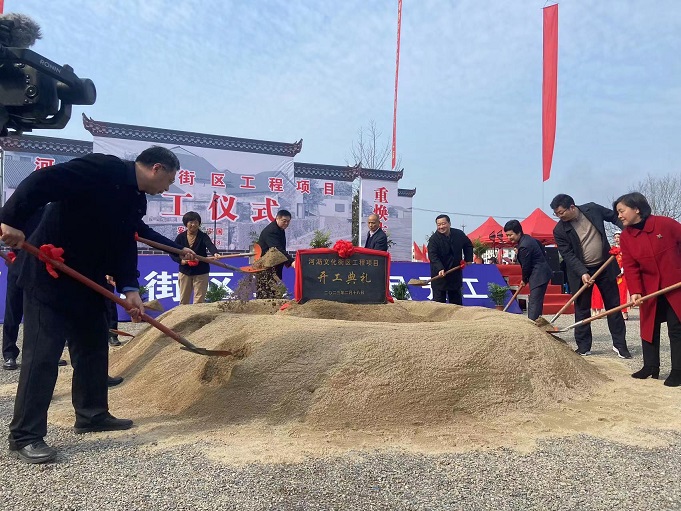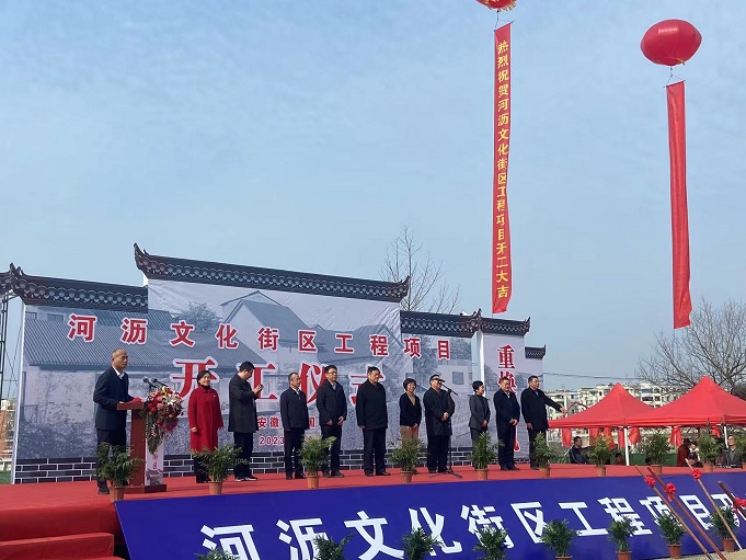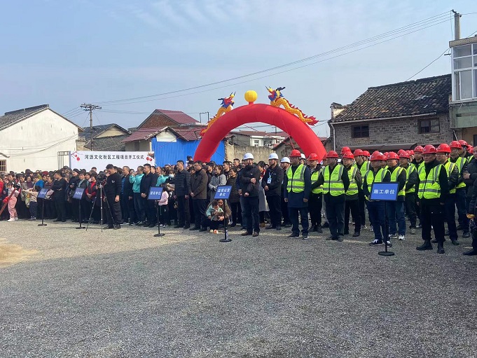 黃山建工集團(tuán)董事長項(xiàng)端陽、總經(jīng)理葉金發(fā)、副總經(jīng)理吳學(xué)武及項(xiàng)目負(fù)責(zé)人和部分施工人員參加了寧國市河瀝溪文化街區(qū)工程項(xiàng)目的開工盛典。